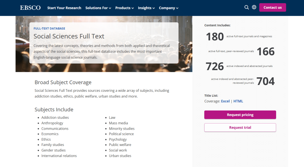 این تنوع موضوعی باعث شده است که Social Sciences Full Text برای پروژههای تحقیقاتی چندرشتهای نیز بسیار کاربردی باشد.