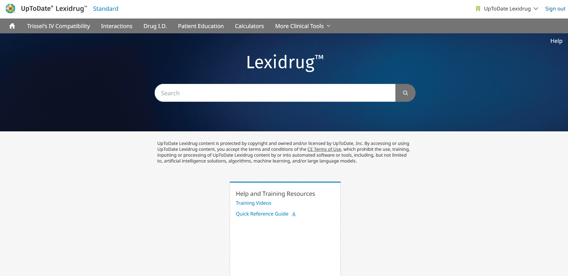 با استفاده از UpToDate® Lexidrug™ می‌توانید به ابزارهای اضافی برای آموزش به بیماران در زمینه داروها، بیماری‌ها/شرایط، روش‌ها، دستورالعمل‌های ترخیص، محصولات طبیعی و زندگی سالم دسترسی پیدا کنید. سایر ابزارهای بالینی مفید شامل طرح‌های دارویی، تأییدیه‌های داروهای جدید و خدمات مونوگرافی فرمولاری هستند.
