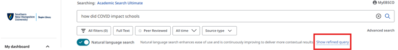 به طور خلاصه Natural Language Search یک ویژگی هوشمند روی بستر EBSCO است که با بهرهگیری از هوش مصنوعی تلاش میکند جستجو در پایگاههای علمی را برای همه کاربران از دانشجویان تا پژوهشگران حرفهای سریعتر، سادهتر و مؤثرتر کند. جستجوی زبان طبیعی پلی است بین کاربر انسانی و پایگاههای اطلاعاتی پیچیده که بدون حذف نقش پژوهشگر، دسترسی به دانش علمی را سادهتر میکند.