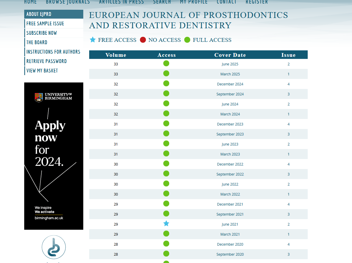 مجلهی European Journal of Prosthodontics and Restorative Dentistry